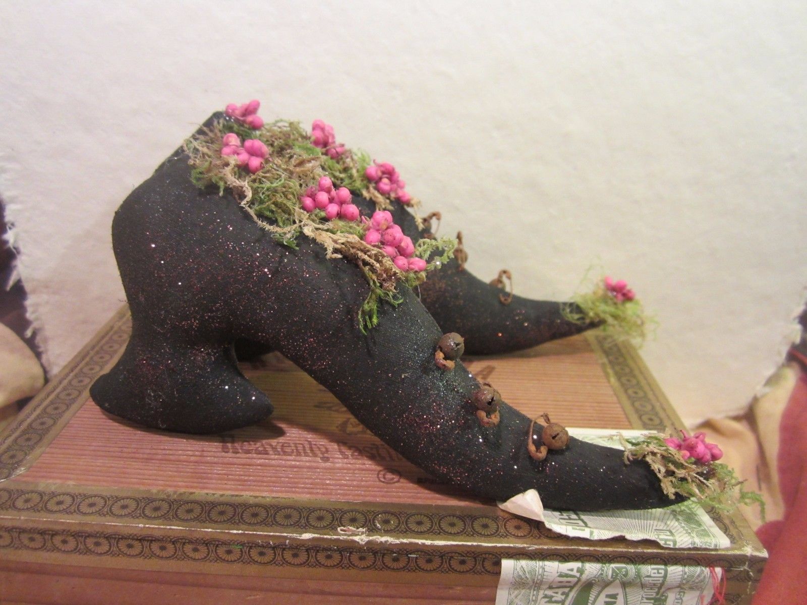 Title (ebay affiliate link): Halloween Prim Black Witch Shoes - Ornies or Bowl Fillers #1389