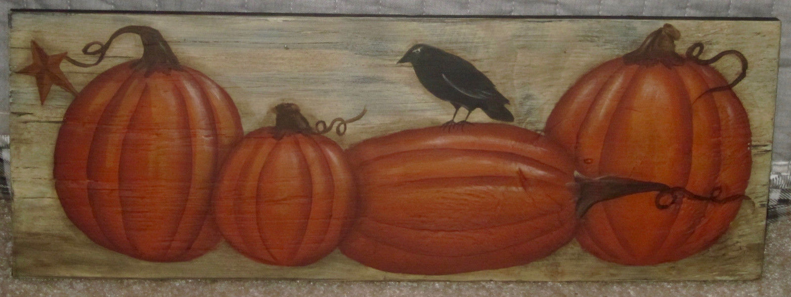Title (ebay affiliate link): *~*PRIMITIVE*~* HP FOLK ART PRIM PUMPKINS *~* CROW *~* FALL *~* BOARD