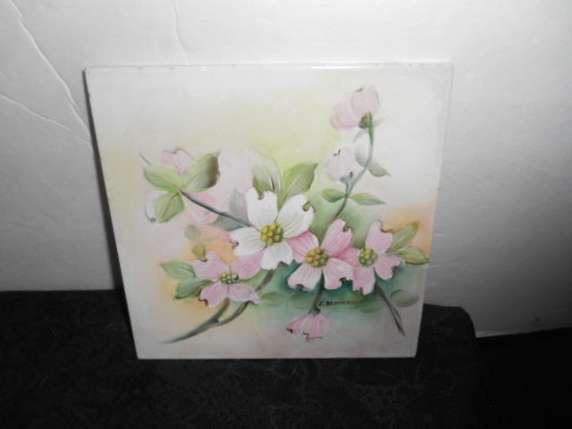 Title (ebay affiliate link): Beautiful Decorative Vintage Porcelain Hand Painted Flowers Signed Tile