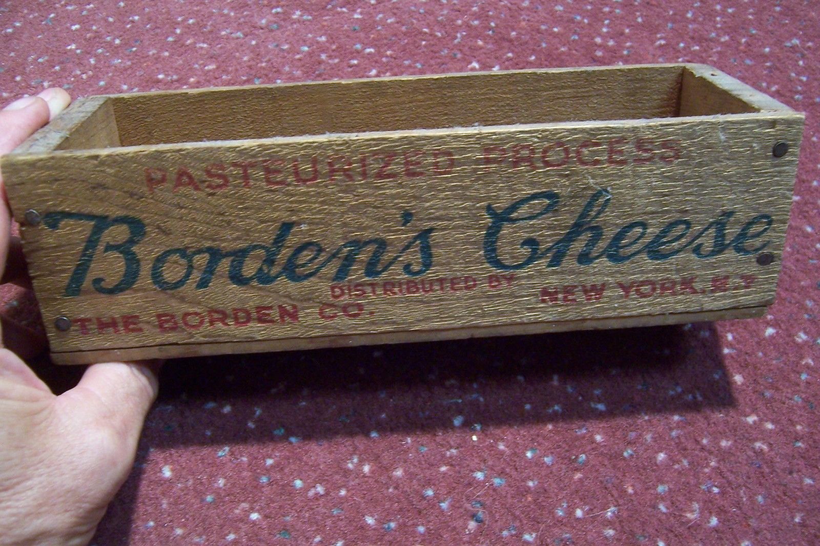 Vintage Borden''s American Cheese 2 Lb. Wooden Box New York
