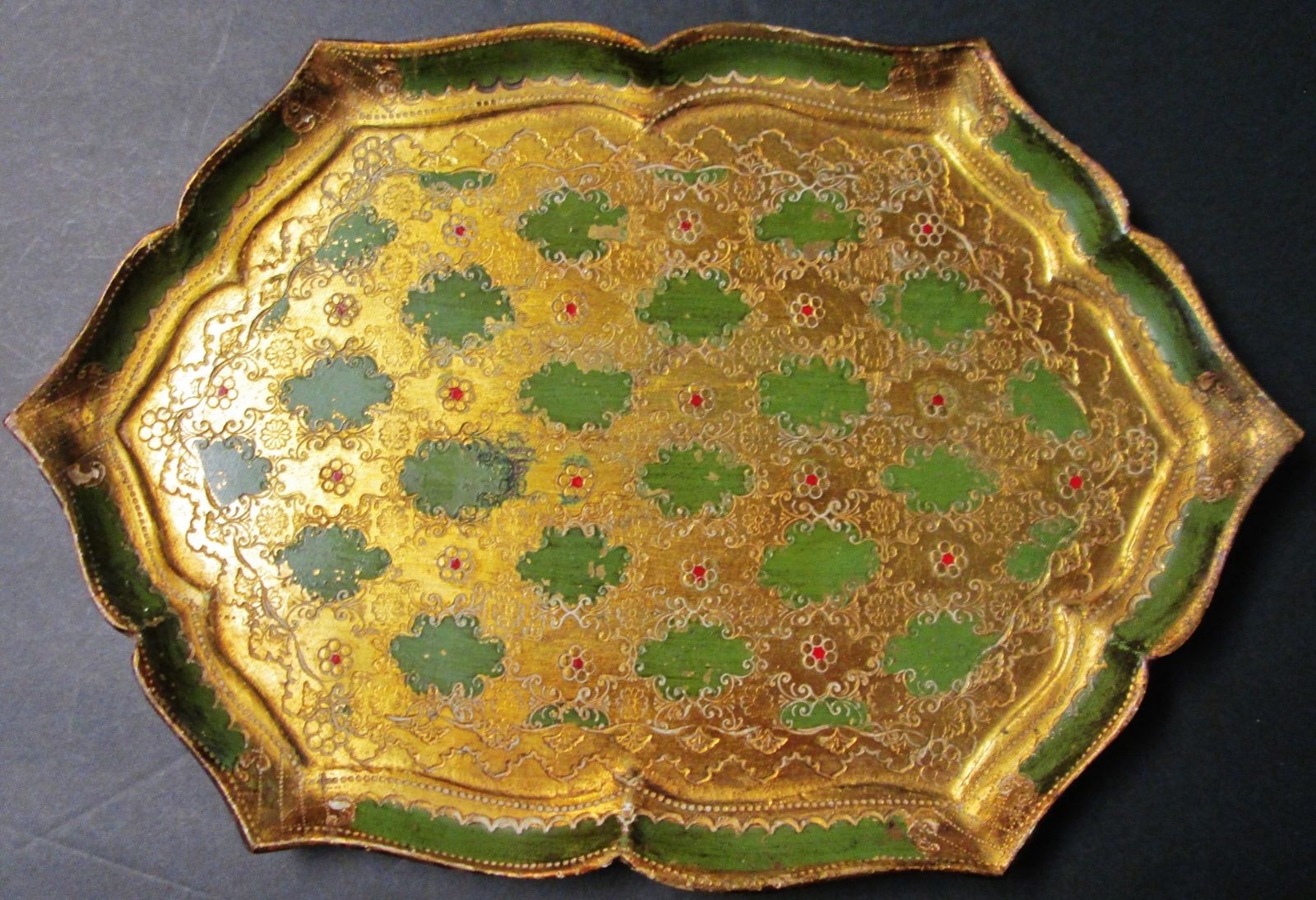 Vintage Florentine Wooden Tray Gold, Green & Red Italian Woodenware