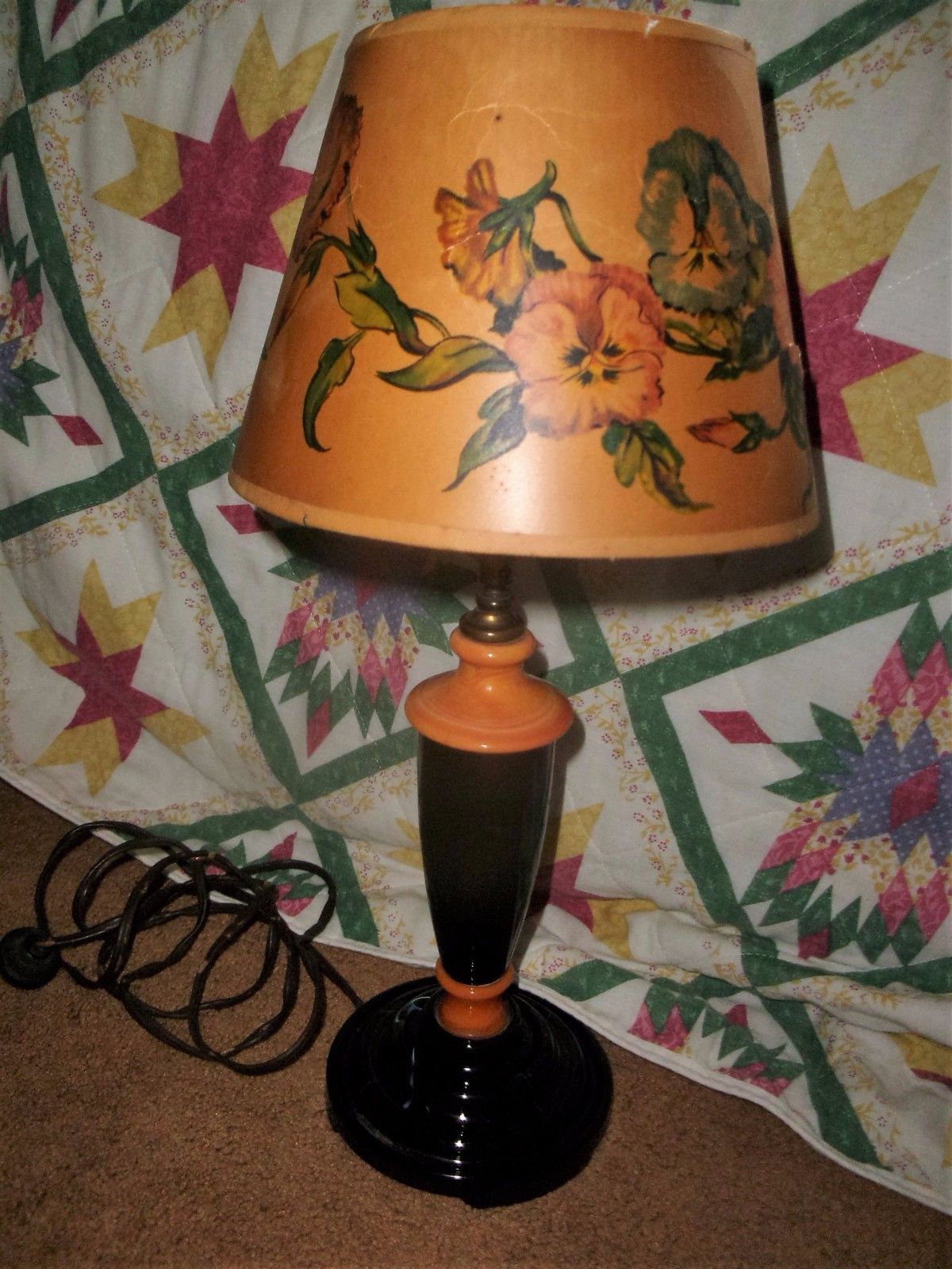 ANTIQUE HOUZEX ELECTRIC TABLE LAMP WITH SLAG GLASS BASE