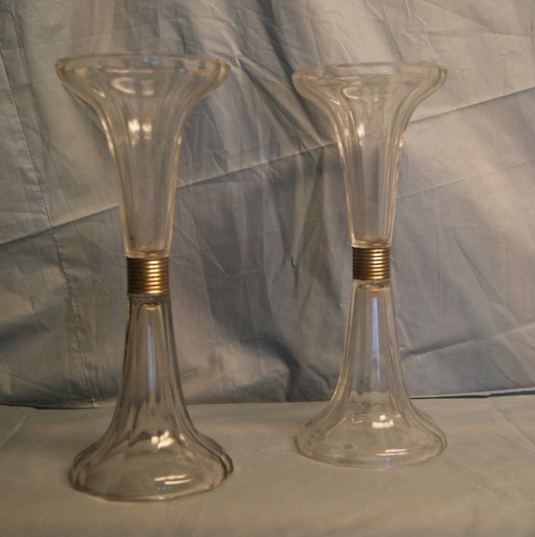 Title (ebay affiliate link): Vintage Pair of Art Deco Era One Foot Tall Glass Display Risers, Hat Stands