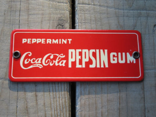 Title (ebay affiliate link): Peppermint Coca Cola Pepsin Gum Porcelain Sign