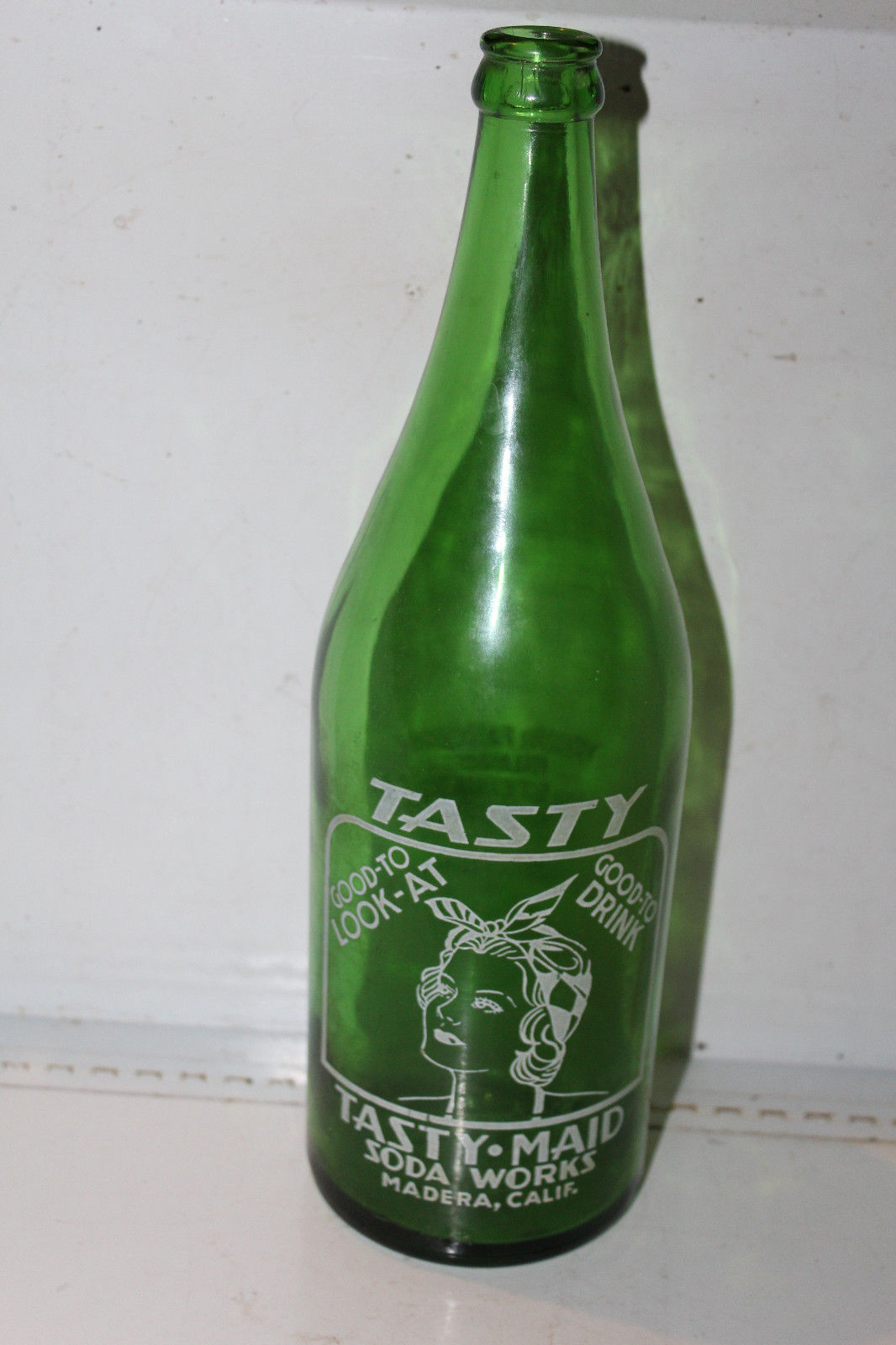Tasty Maid Soda Works Picture Acl Bottle Green Madera California Cal CA Woman