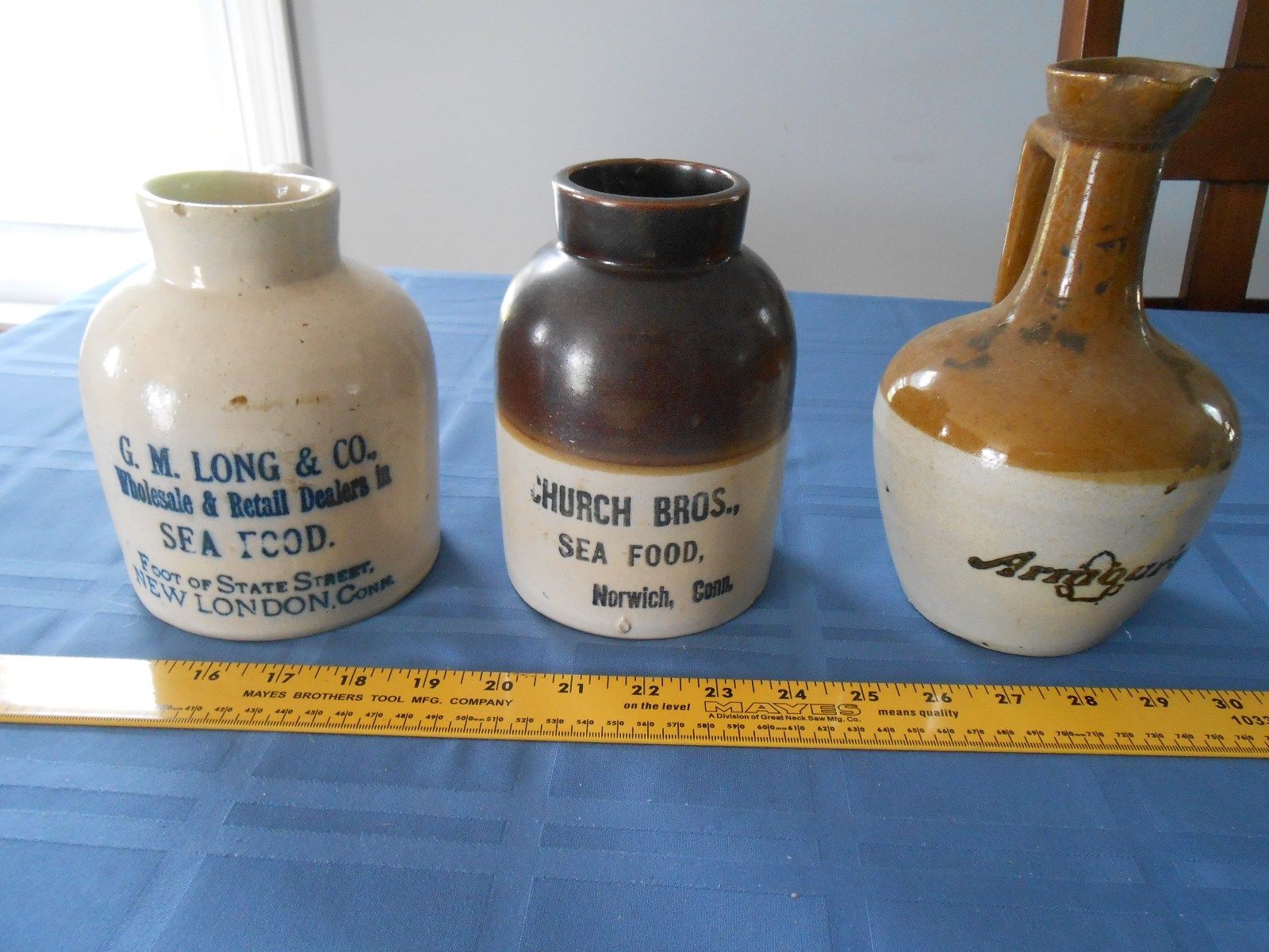 Vintage Pottery Seafood Advertising Jugs Lot of 3