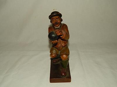 VINTAGE GERMAN BLACK FOREST HAND CARVED - COLORED WOOD FIGURINE OF MAN BOWLING