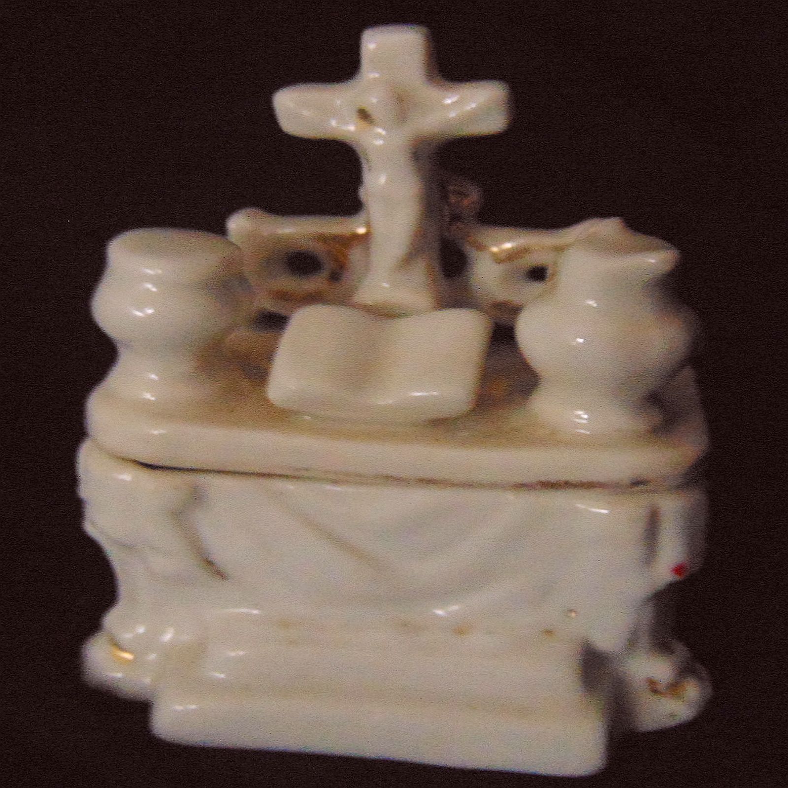 Title (ebay affiliate link): 19TH C GERMAN DRESDEN PORCELAIN ALTAR CATHOLIC JESUS CRUCIFIX ROSARY HOLY WATER