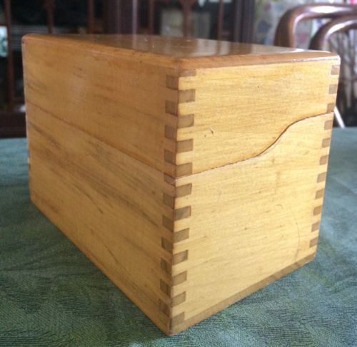 Vintage Wooden Recipe Card File Box Dove Tail Corners Pine Wood