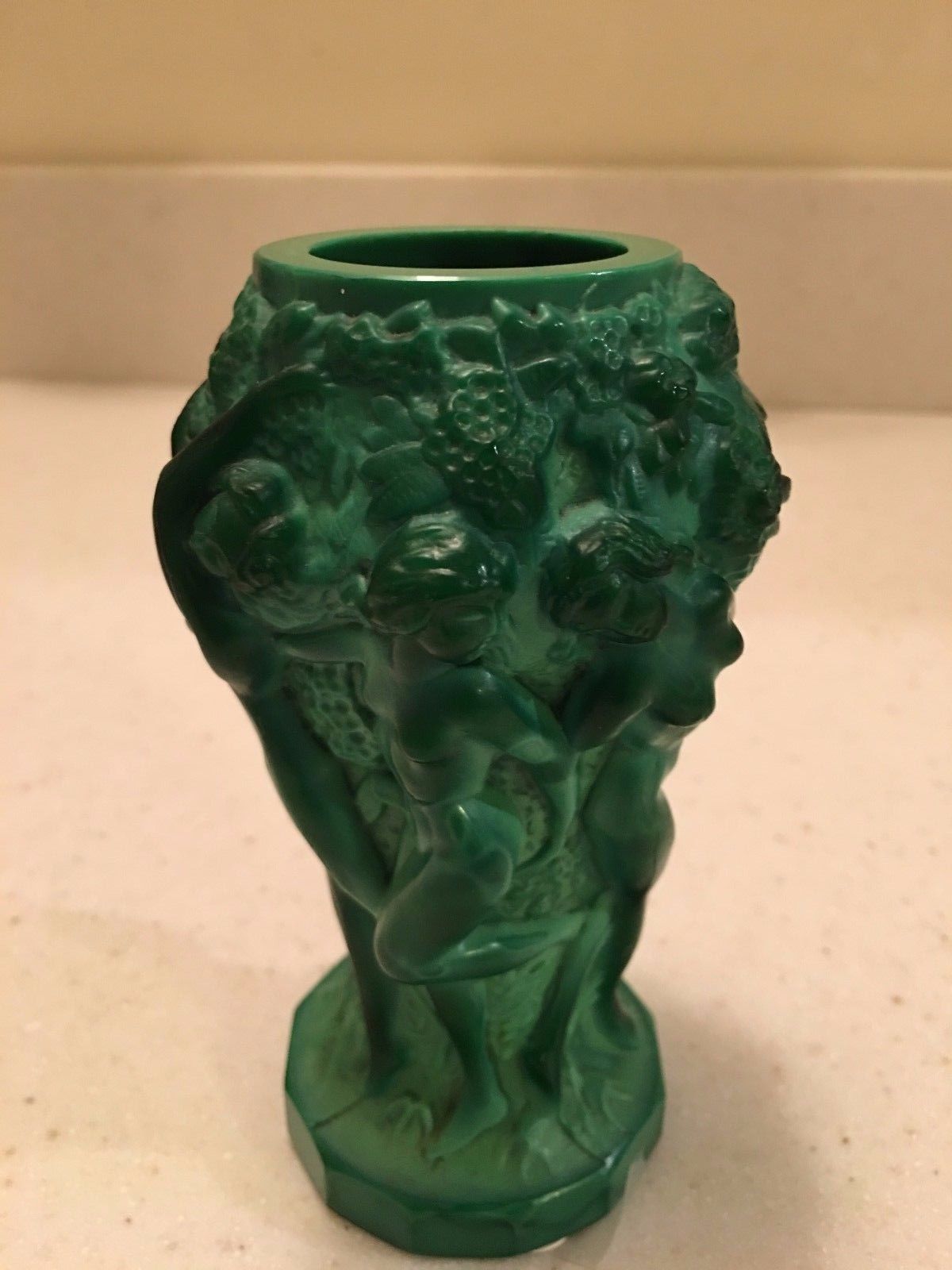 Title (ebay affiliate link): Vintage Czech Bohemia Malachite Art Nouveau Vase Raised Nude Figures 1920-30''s