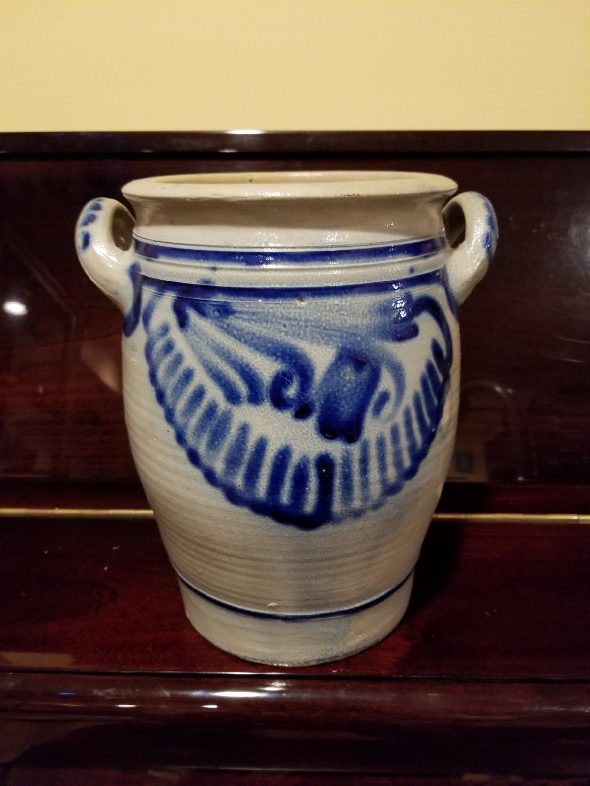 Title (ebay affiliate link): RARE COBALT BLUE DECORATED OVOID SHAPED STONEWARE CROCK - No Reserve