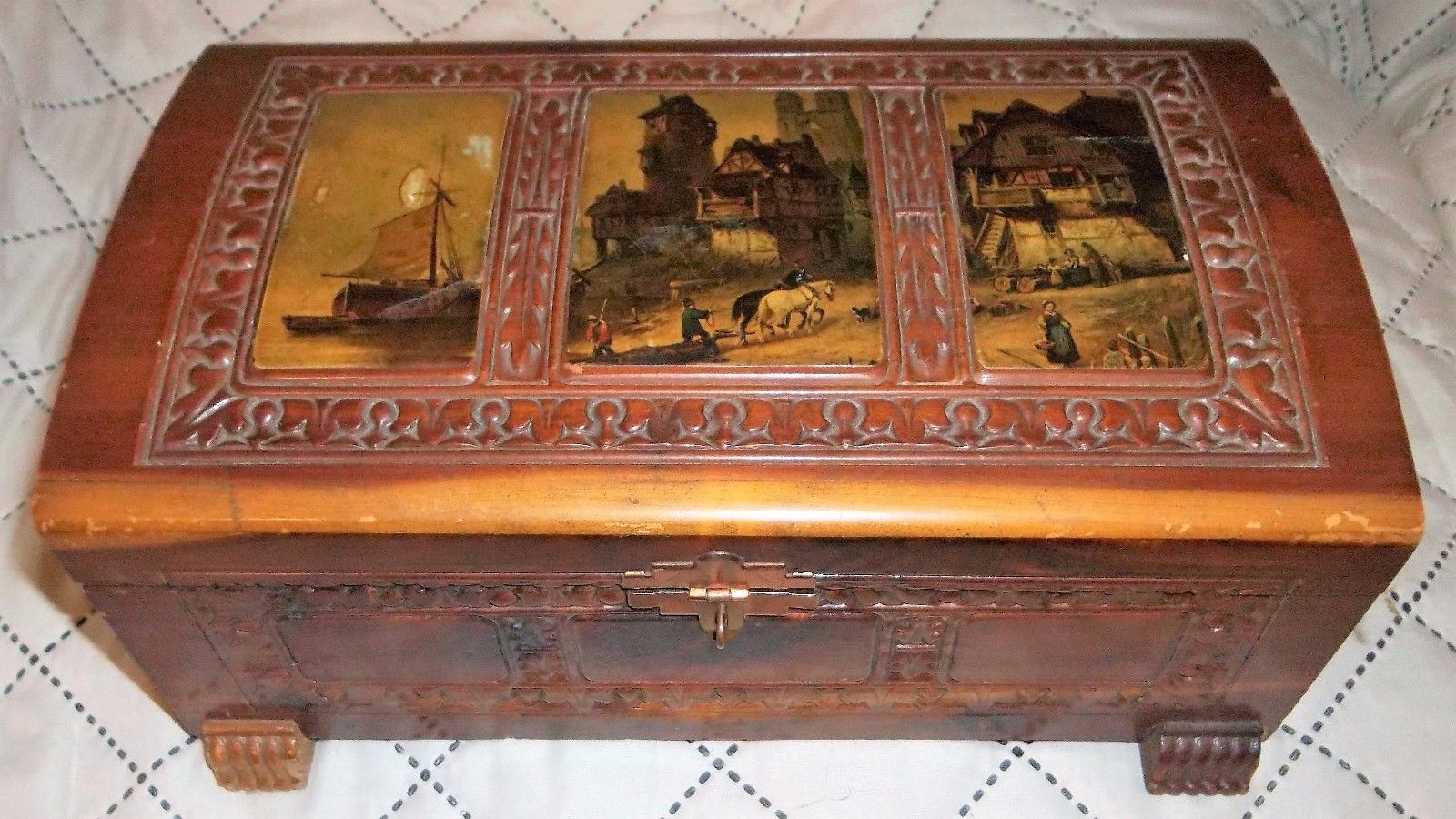 Title (ebay affiliate link): Vintage Ornate Carved 1930''s ? Cedar Wood Dresser Jewelry Trinket Box w/ horses&