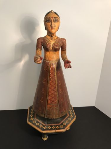 Title (ebay affiliate link): Vintage Indian Wood Carving Hand Painted Woman On Stand Approx 22" Tall