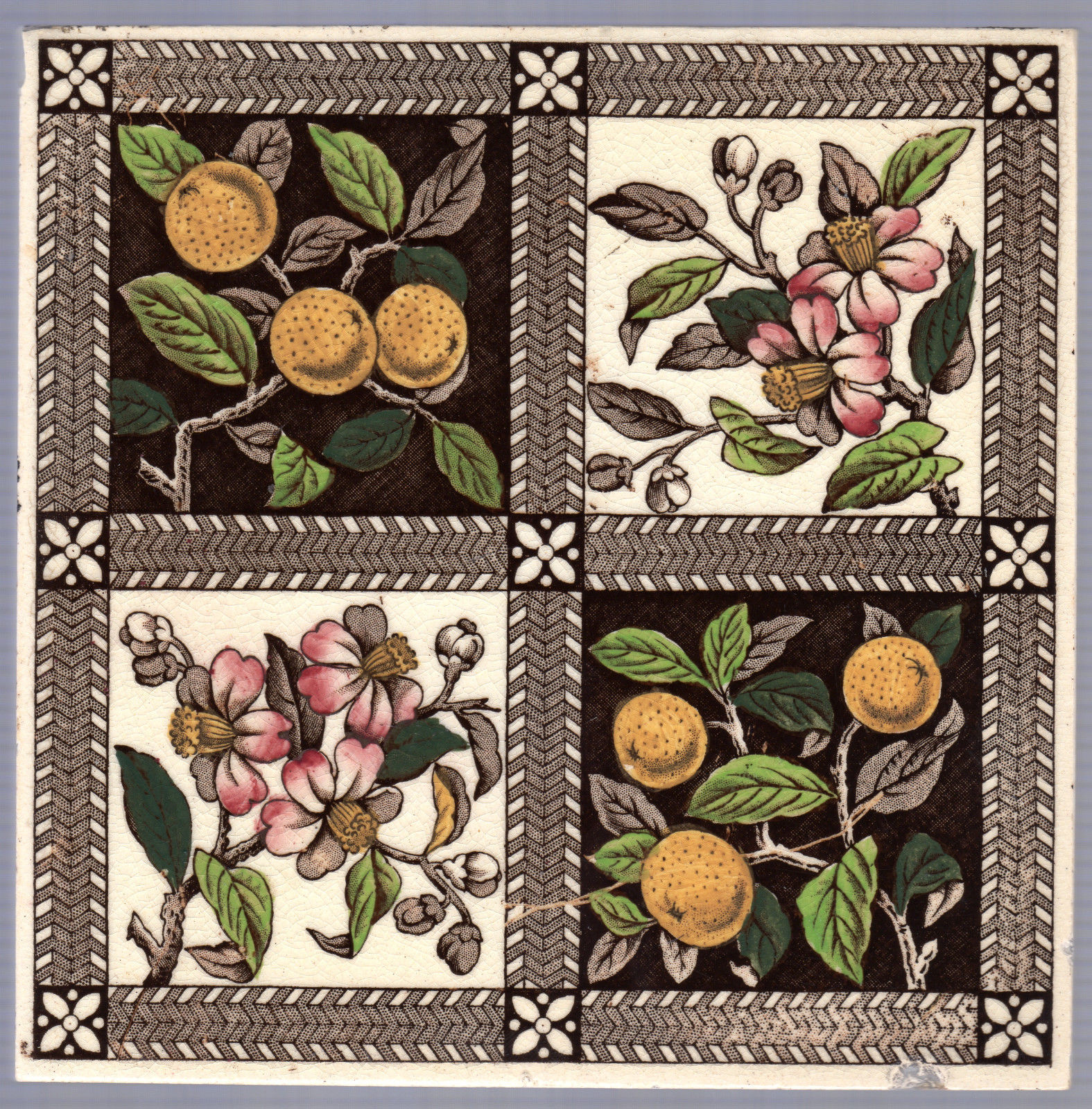 Title (ebay affiliate link): The Decorative Art Tile Co, - c1880 - Fruits & Flowers - Antique Victorian Tile