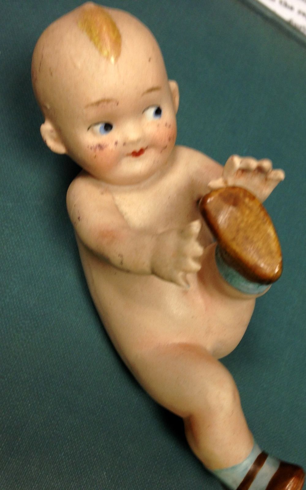 ANTIQUE GERMAN GEBRUDER HEUBACH ? BISQUE PIANO BABY FIGURINE Ceramic Baby doll