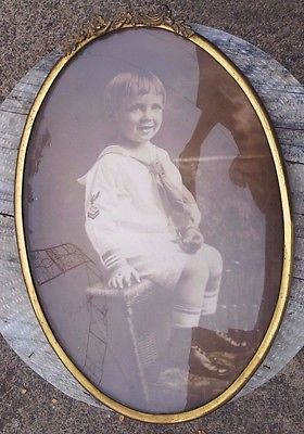 Title (ebay affiliate link): Antique 19th C Ornate Oval Brass Beveled Bubble Frame w/ Boy in Military Photo