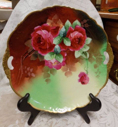 Title (ebay affiliate link): ANTIQUE HAND PAINTED PORCELAIN CHARGER/PLATE~ROSES~SIGNED~2 HANDLES~11"