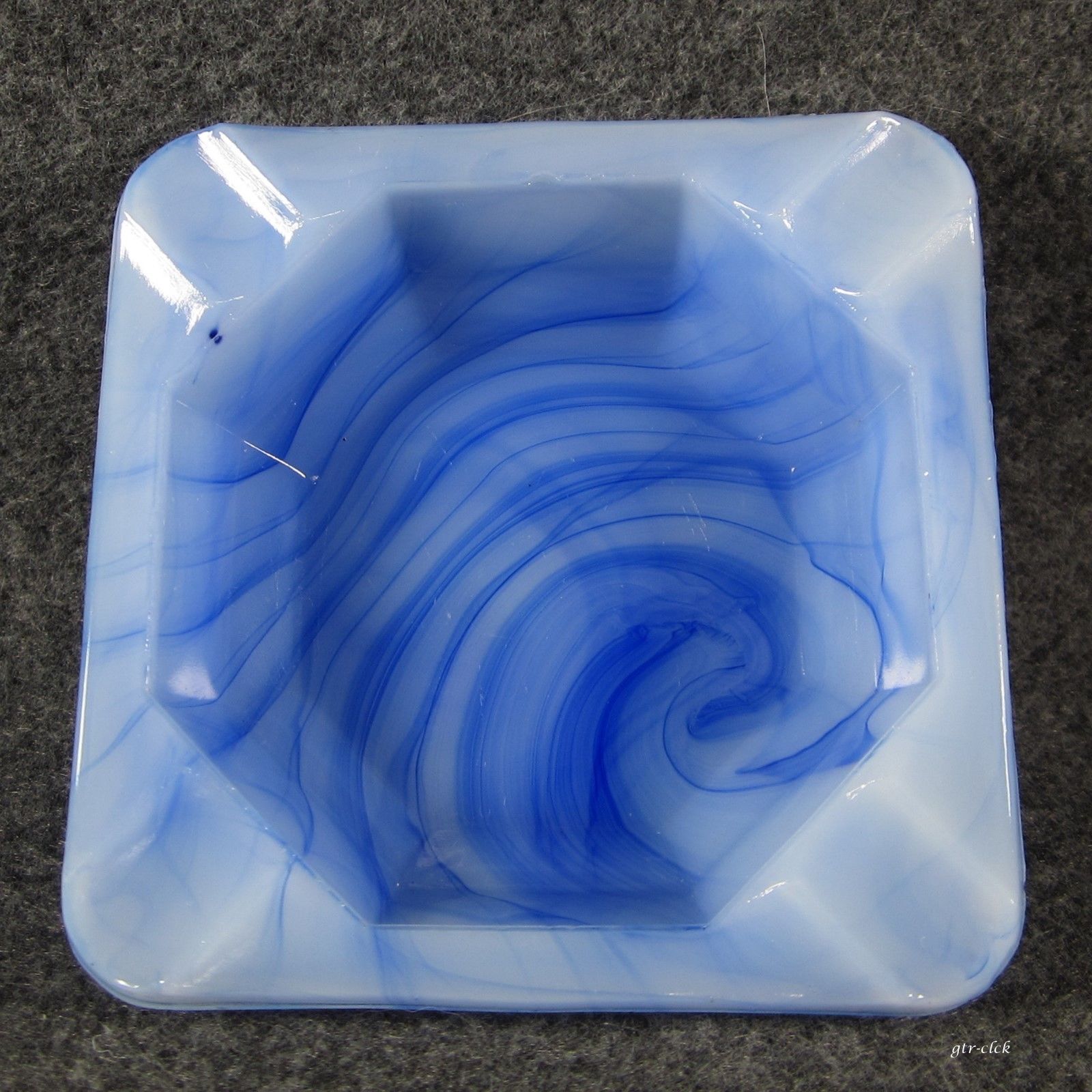 Title (ebay affiliate link): VERY NICE VINTAGE AKRO AGATE BLUE SWIRL ASH TRAY .. 2-13/16" SQUARE .. #0813H