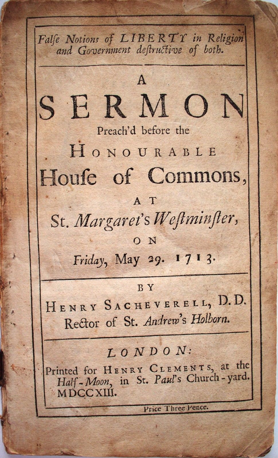 Title (ebay affiliate link): 1713 Sacheverell - False Notions of Liberty in Religion & Government Destructive