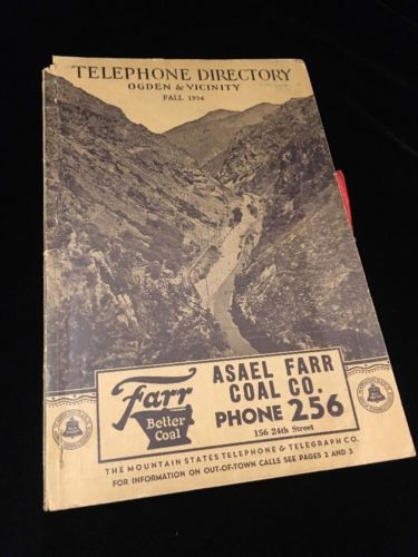 Title (ebay affiliate link): Rare Ogden Utah Fall 1936 Telephone Directory Genealogy Farr Coal UT Vintage Map