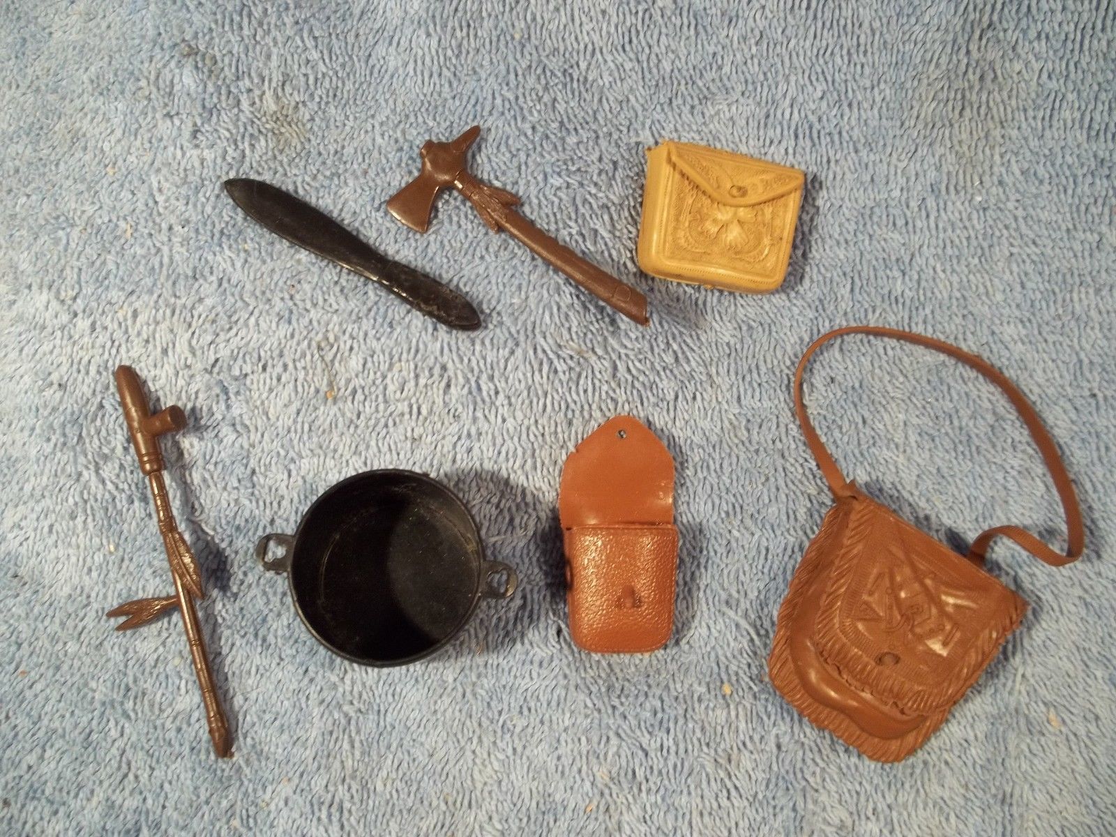 Title (ebay affiliate link): Vintage JOHNNY WEST BOTW SMALL ACCESSORY LOT WEAPONS BAGS CAMPFIRE POT