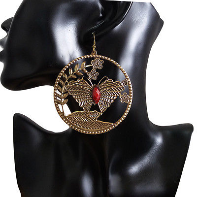 Title (ebay affiliate link): Vintage Womens Boho Antique-Brass Hollow Butterfly Plate Red Bead Hook Earrings