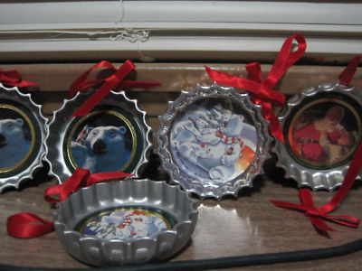 Title (ebay affiliate link): 5 Coca Cola Bottle Cap Ornaments Santa Polar Bear