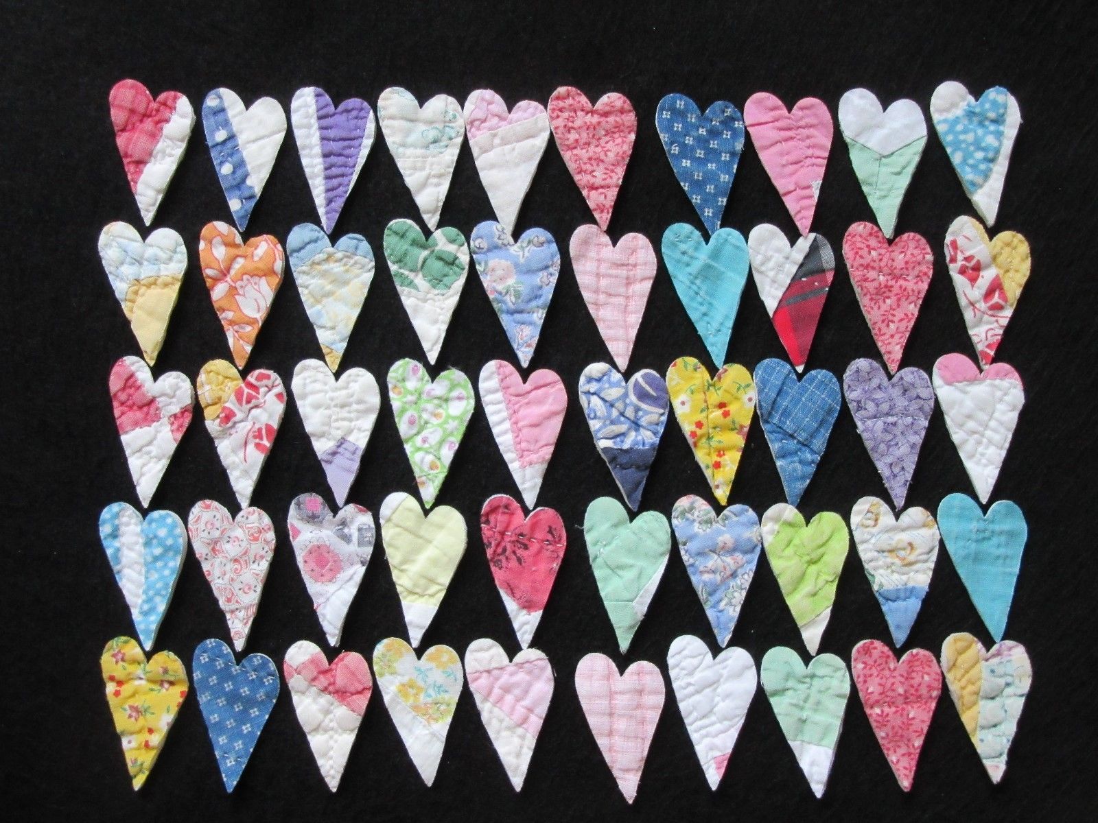 50 COLORFUL VTG CUTTER QUILT MINI HEARTS - SCRAPBOOKING - SO CUTE!