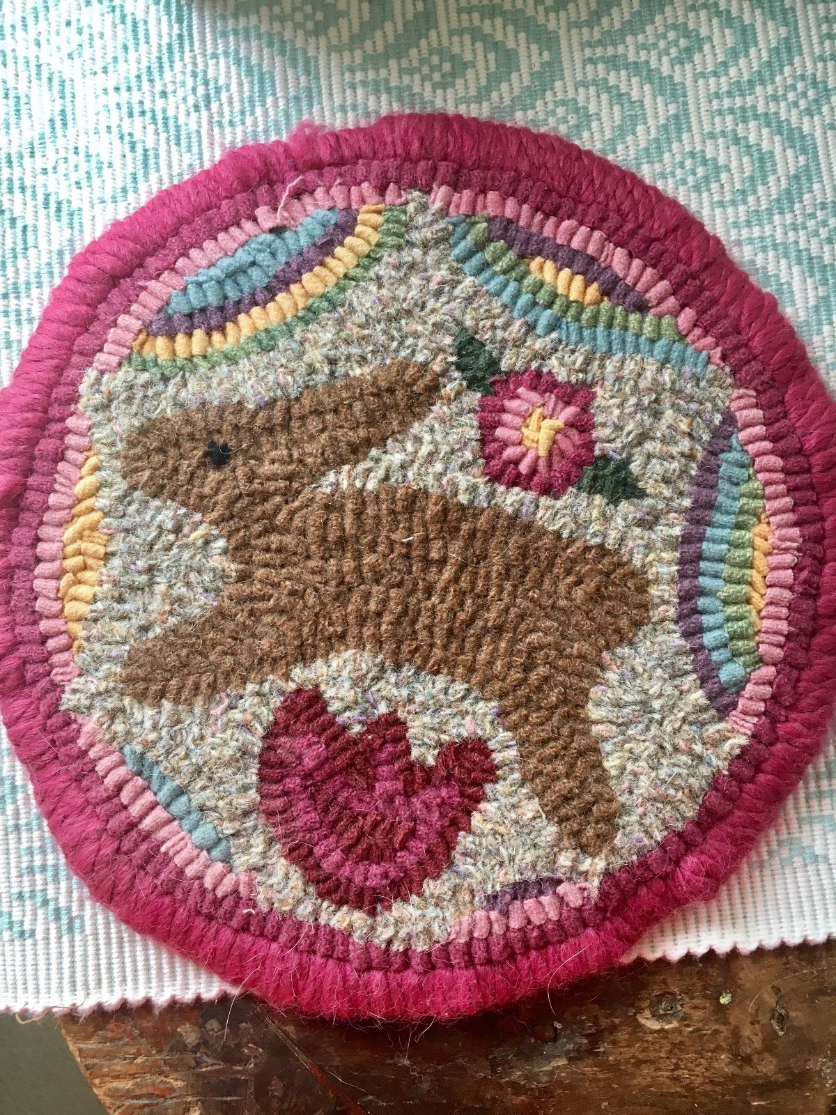 Title (ebay affiliate link): PRIMITIVE HOOKED RUG BUNNY AND FLOWERS BY ERIKASCUPBOARD