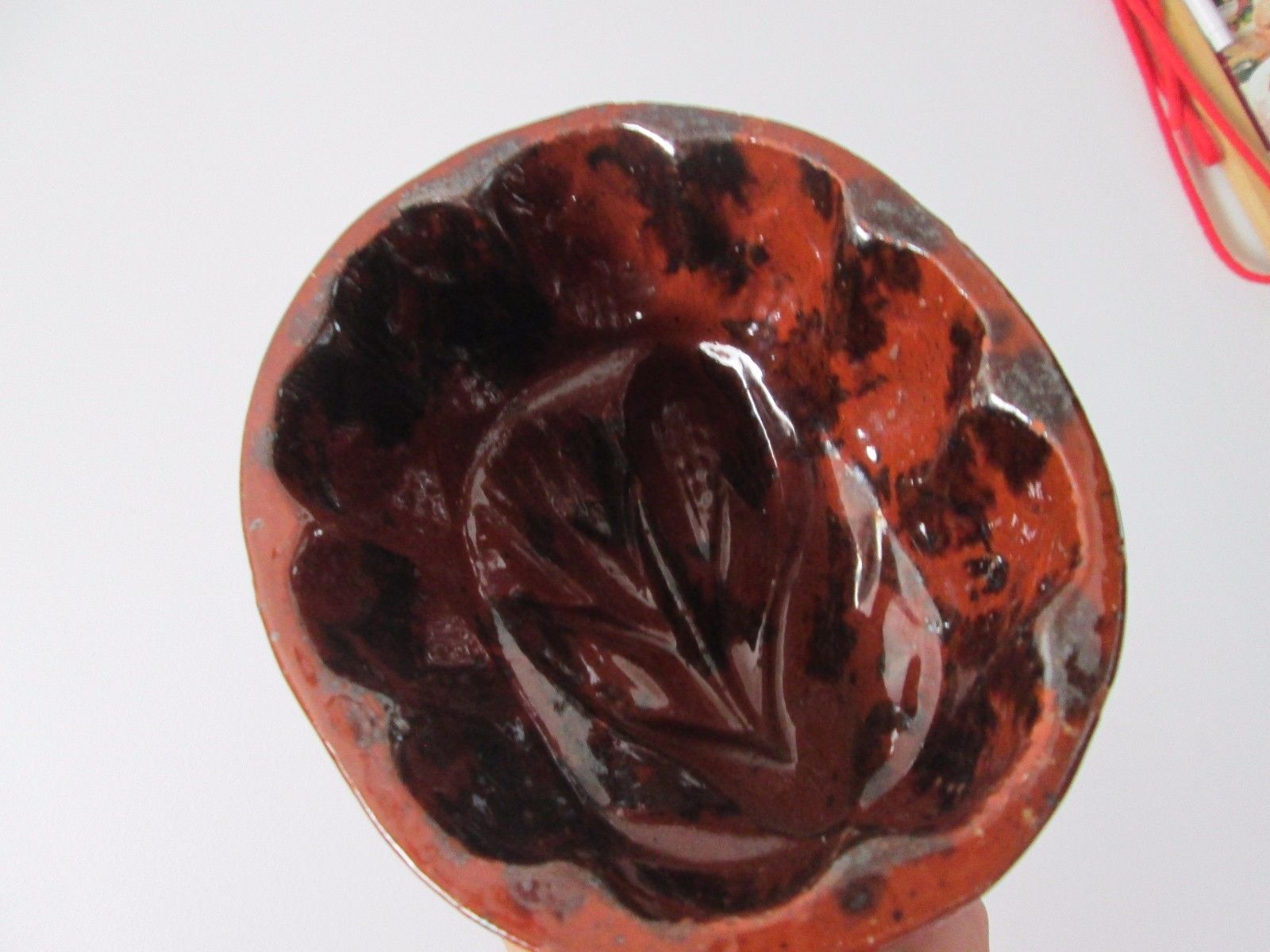 19th C American - REDWARE FLOWER FOOD MOLD w/ MANGANESE SPONGE DECORATION