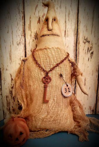 Primitive Halloween Ghost Doll w/ Pumpkin