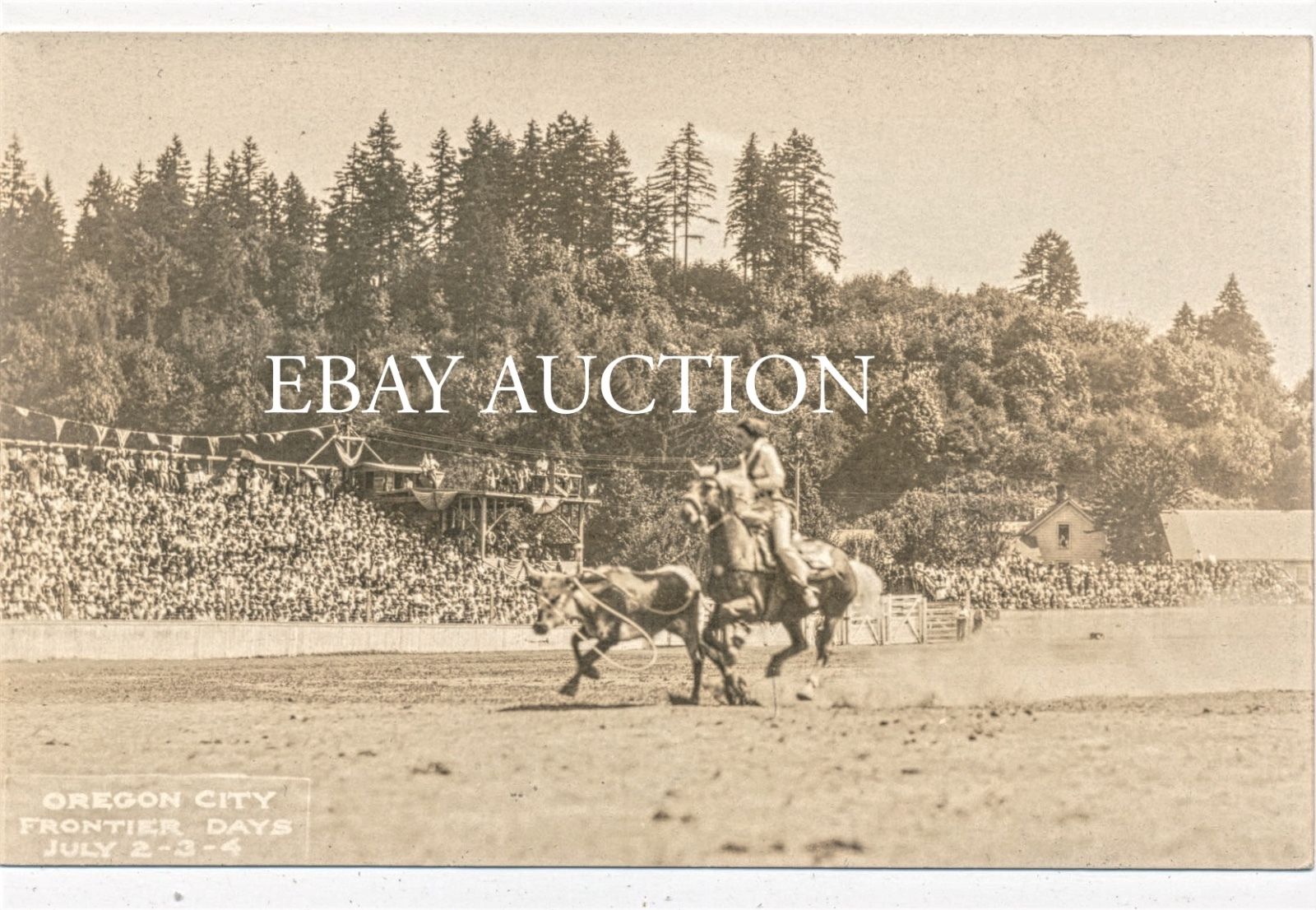 Title (ebay affiliate link): BEAUTIFUL OREGON CITY COWGIRL ROPING RODEO FRONTIER DAY REAL PHOTO POSTCARD RPPC