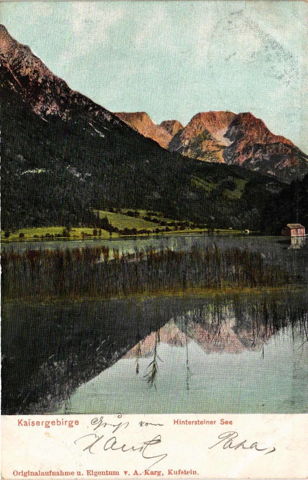Title (ebay affiliate link): DR JIM STAMPS AUSTRIA POSTCARD KAISER MOUNTAINS BEHIND STEINER LAKE