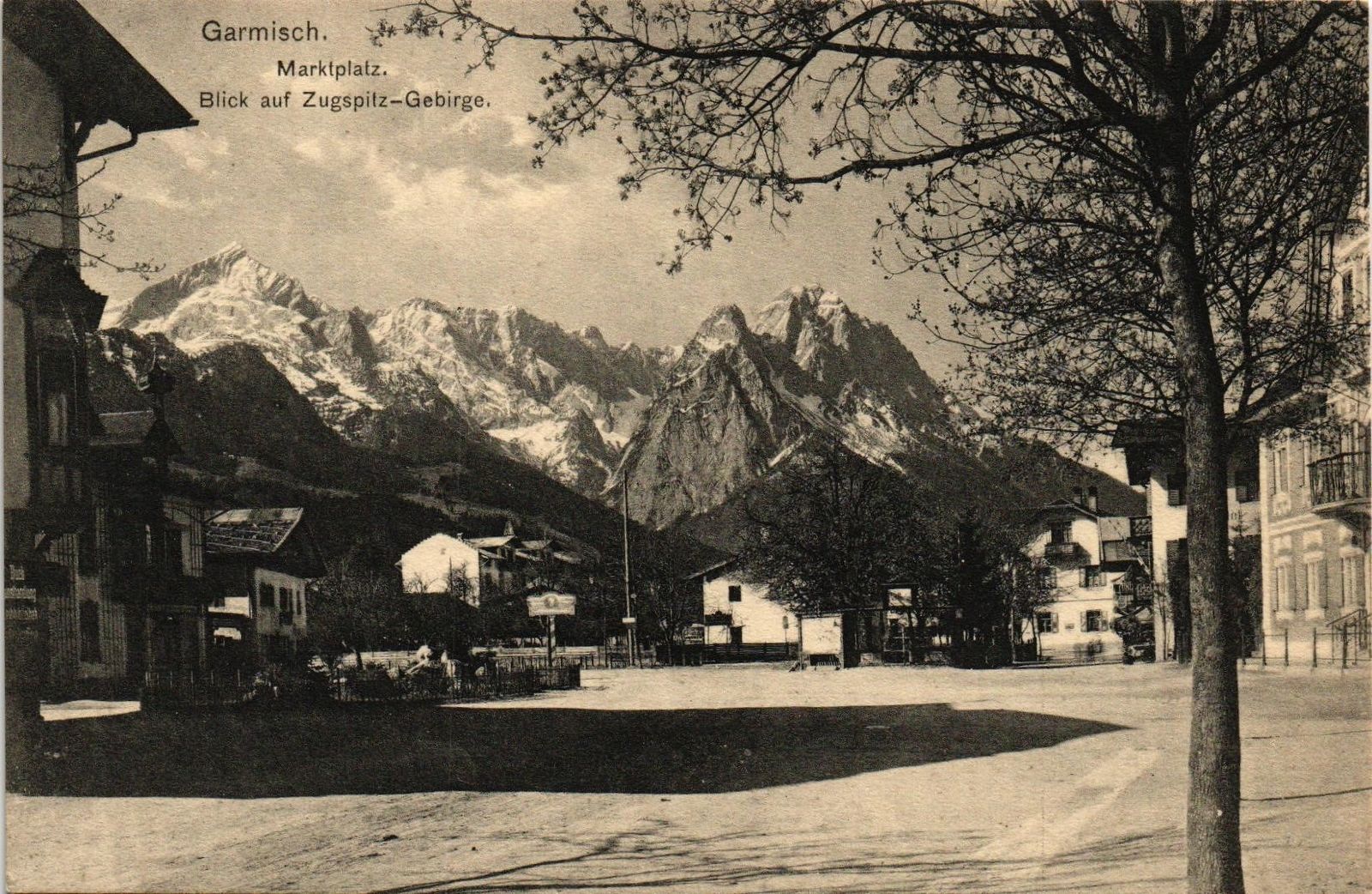DR JIM STAMPS GERMANY POSTCARD GARMISCH MARKETPLACE LOOKING AT ZUG SPITZ