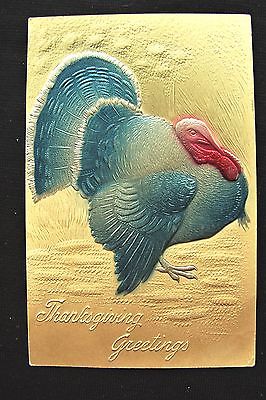 PFB Air Brushed Blue Foil Look Big Turkey Nicely Embossed Thanksgiving Postcard