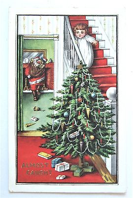 SANTA CLAUS Almost Caught Little CHILD on the Stairs Embossed CHRISTMAS Postcard
