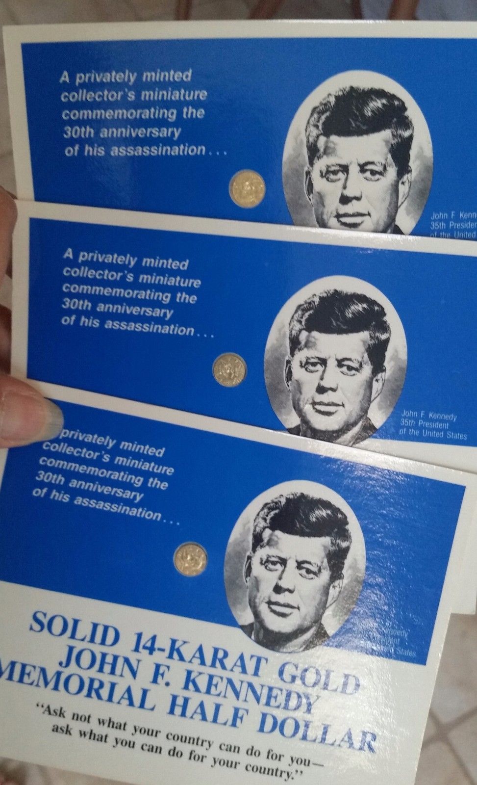 Title (ebay affiliate link): Three JFK Solid 14K Gold John F Kennedy Memorial Half Dollar Mini Medallion Coin