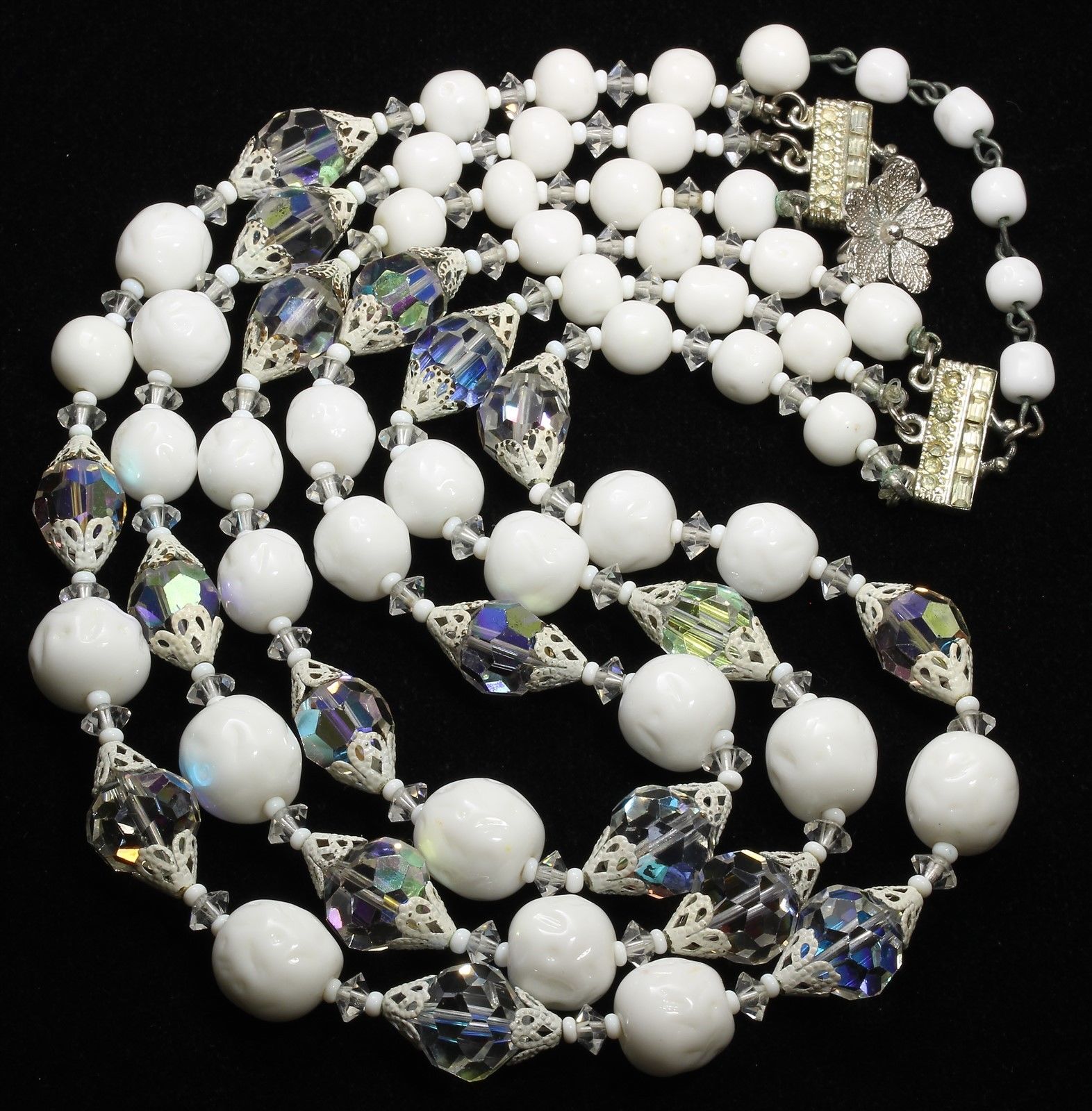 Title (ebay affiliate link): Vintage VENDOME 3-Strand Graduated AB Crystal Milk Glass Bead Choker Necklace