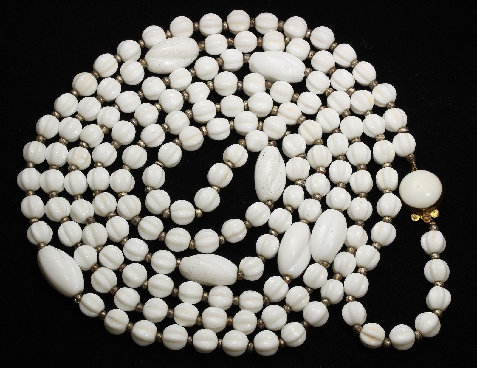 Title (ebay affiliate link): Vintage GERMANY Mid Century Modernist Molded White Milk Glass Bead Necklace 54"