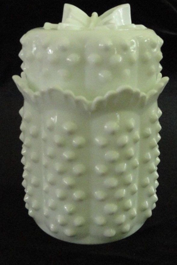 Vintage Fenton Hobnail Milkglass Candy Jar Butterfly Lid