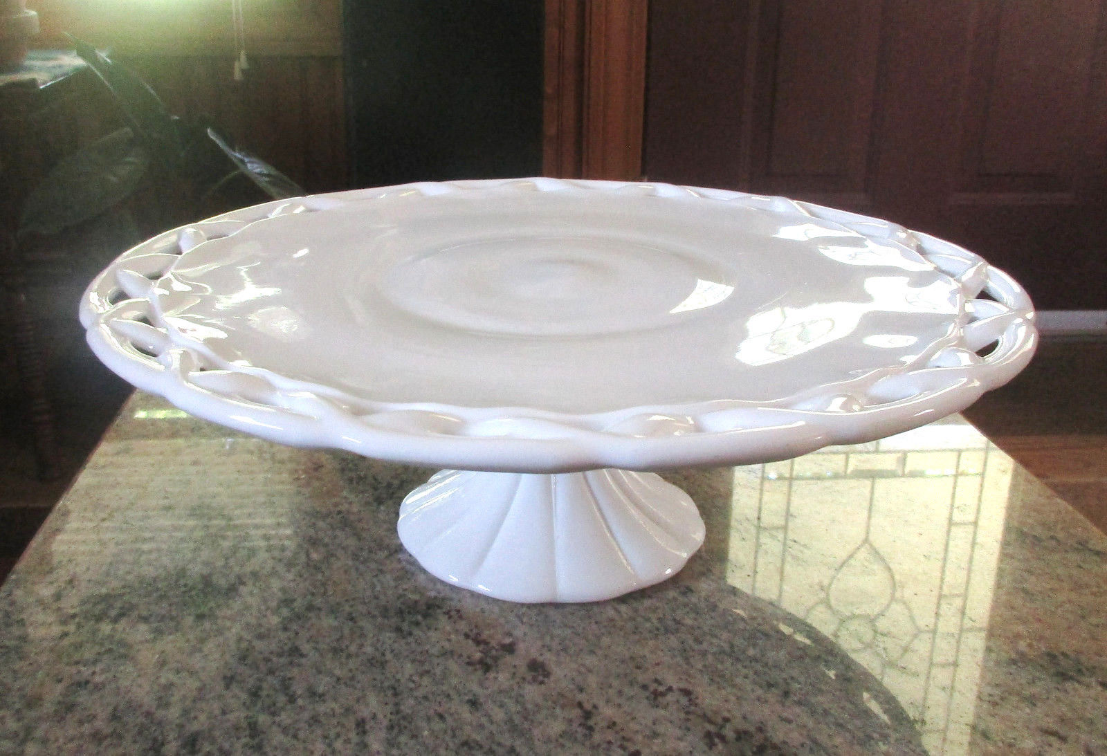 Title (ebay affiliate link): Vintage Large White Milk Glass Open Lace Pedestal Cake Plate Stand