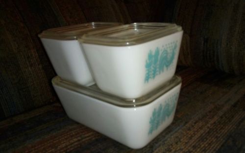 VTG Amish Butterprint 3 Dishes Covers Pyrex Milk Glass oven SET 502 501 fridge