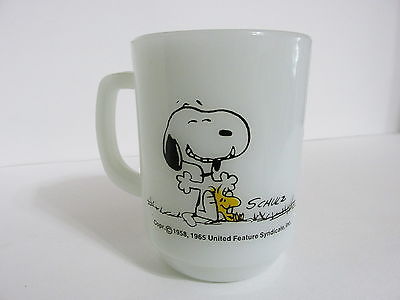 SNOOPY PEANUTS CHARLIE BROWN ANCHOR HOCKING FIREKING MILK GLASS MUG 1980