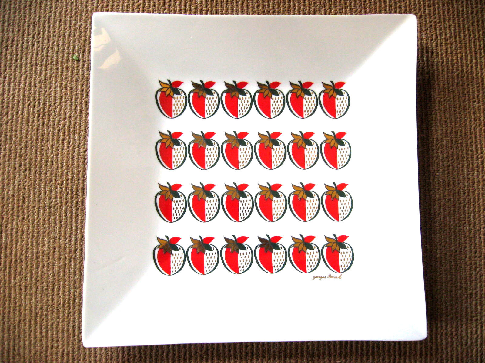 Title (ebay affiliate link): Vintage Mid Century Georges Briard Art Glass Tray Platter Milkglass Strawberries