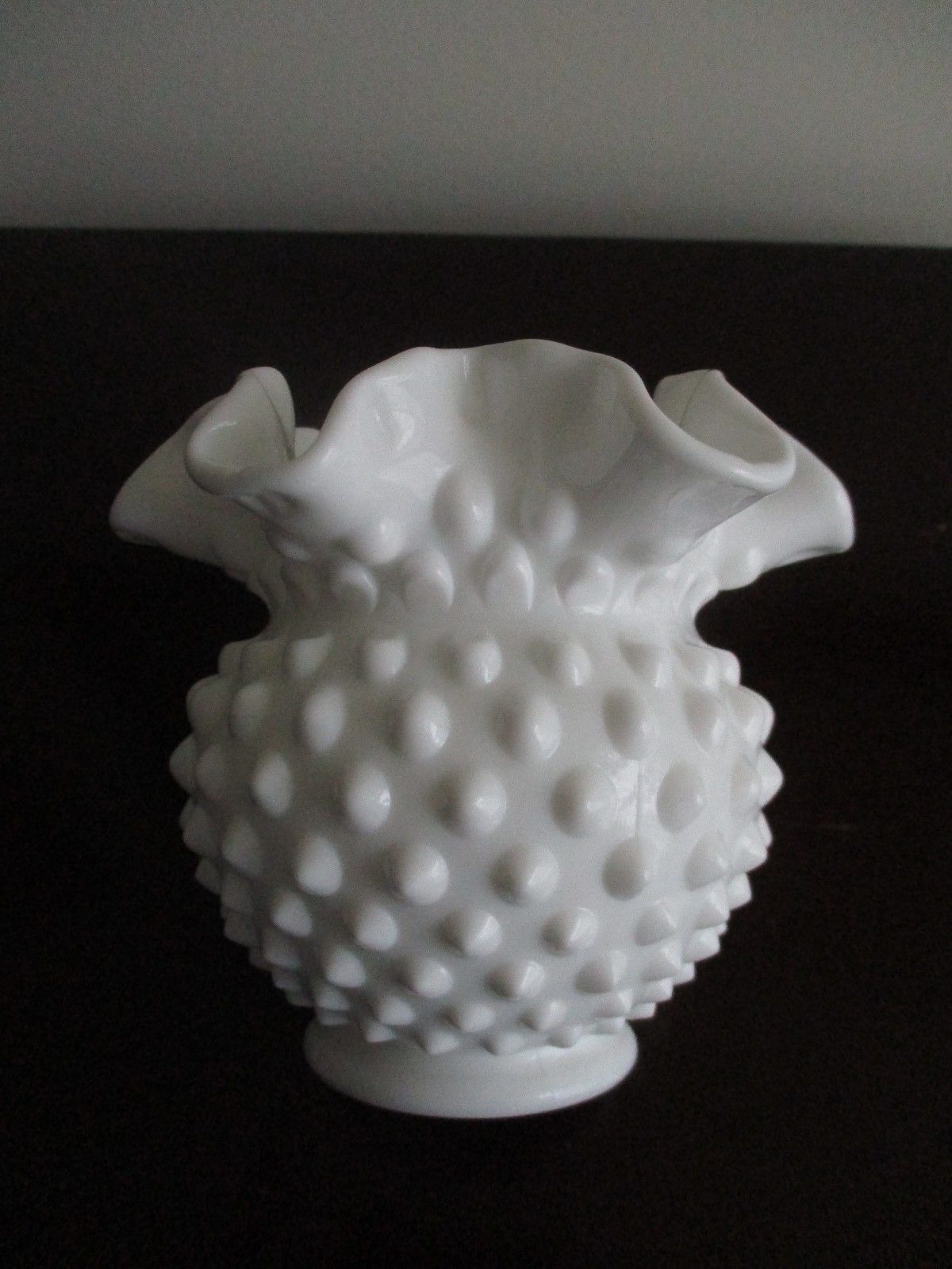 Title (ebay affiliate link): Vintage Fenton Hobnail White Milk Glass Ruffled Edge Bowl ~ 4.25" tall
