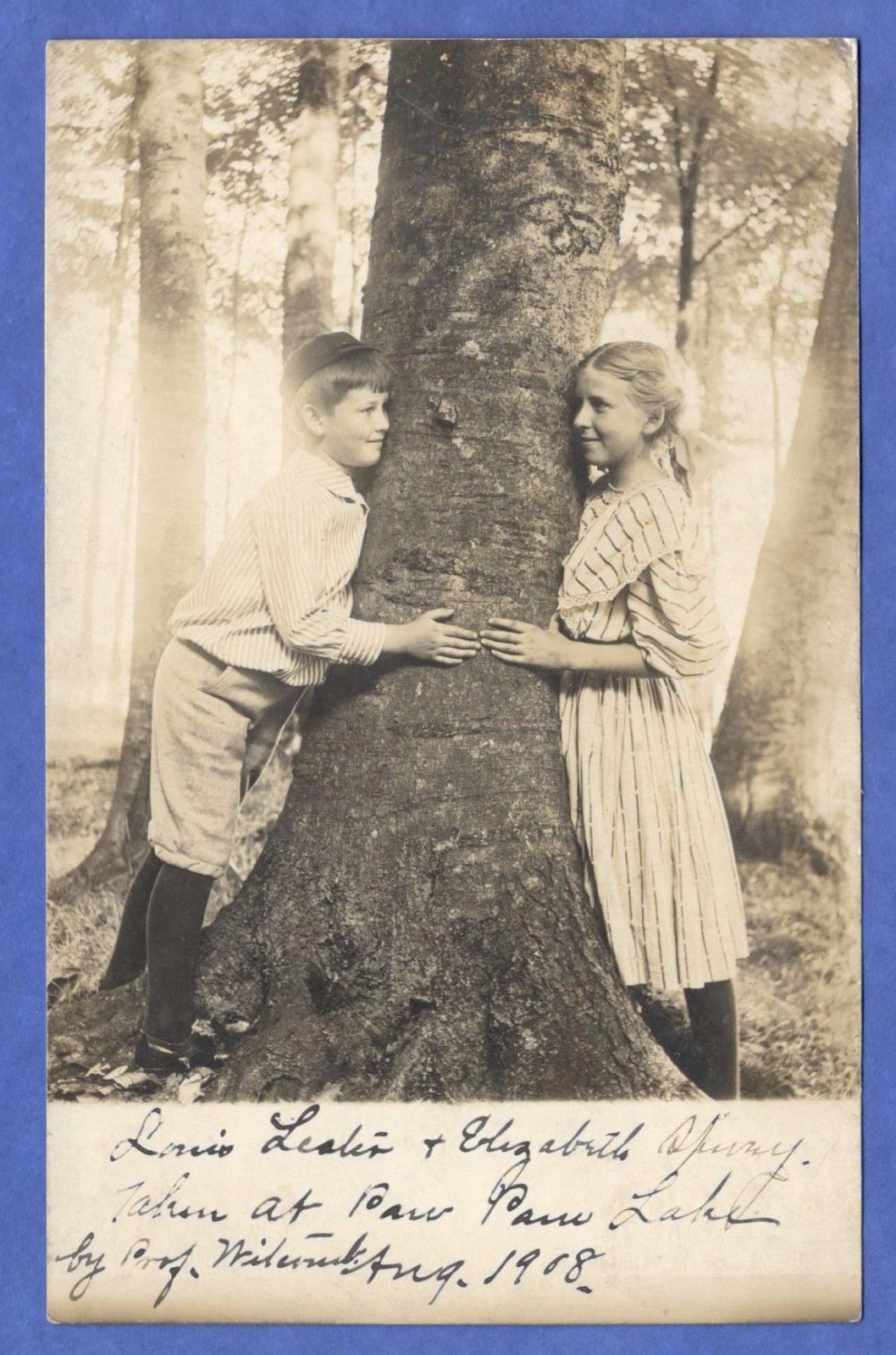 Title (ebay affiliate link): Paw Paw Lake, Michigan, Boy And Girl Hugging Tree Real Photograph Postcard 1908