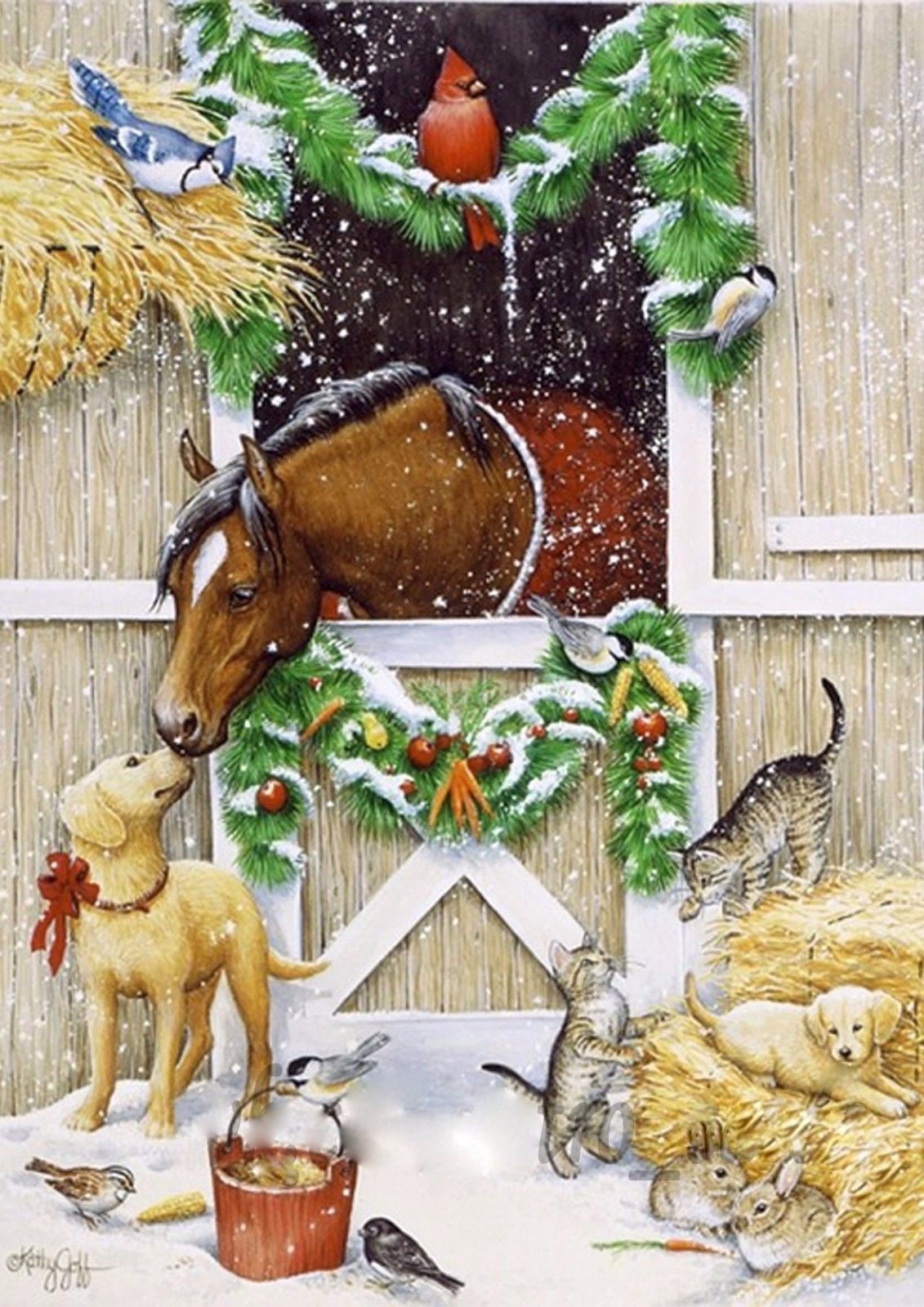 NEW Animals Cat & Dog Horse Christmas ART 1 modern card