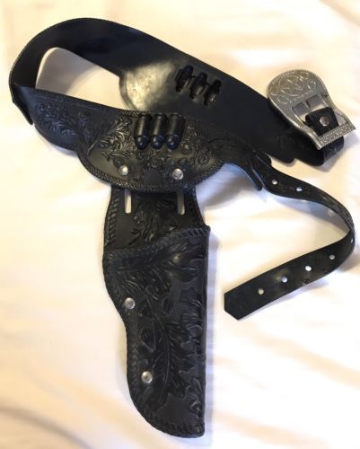 Vintage Black Toy Cowboy Pistol Western Gun Holster
