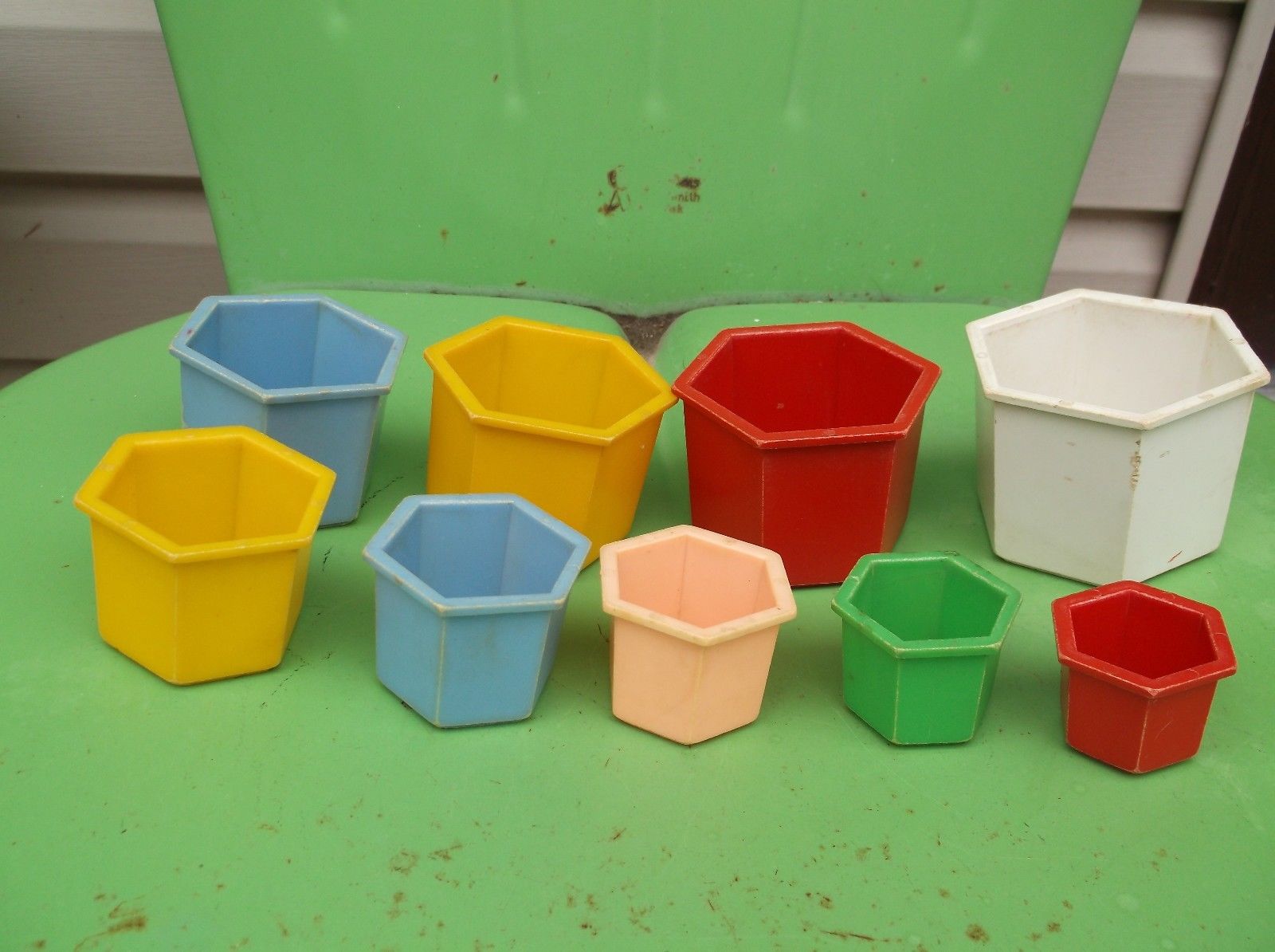 Title (ebay affiliate link): Set of Nine Vintage Child Guidance Stacking Cups. Hexagon. Animals.