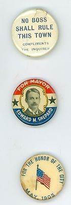 3 Vintage 1890s-1905 New York City Mayor Political Pinback Buttons Shepard